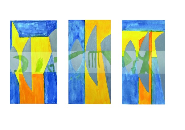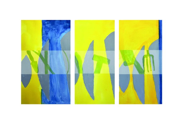 (three panels oil and gold leaf on canvas),